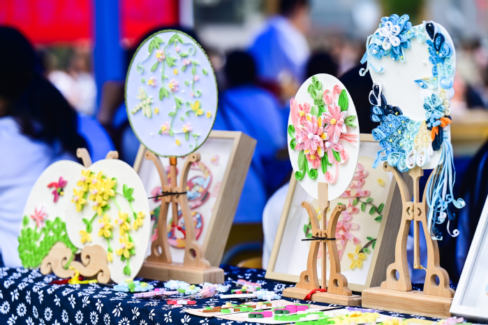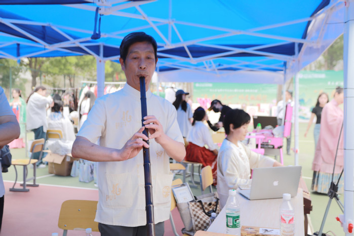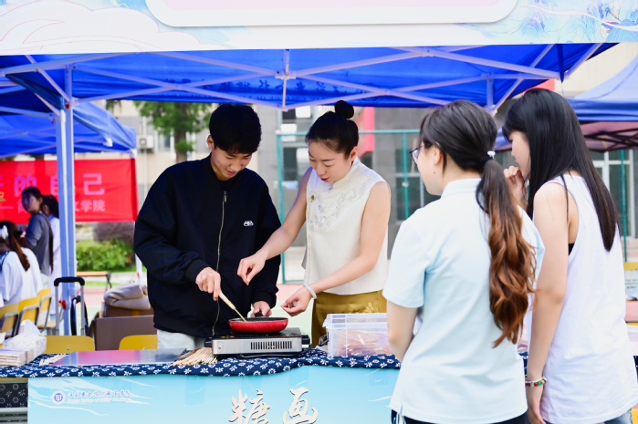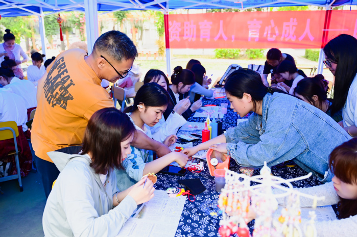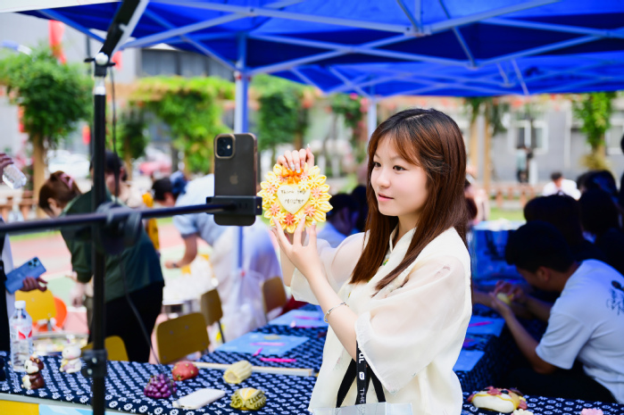 本次非遗校园行活动邀请徐杰等非遗技艺传承人走进校园,现场共设非遗手工体验区、传统文化体验区、非遗作品展览等三大区域。活动现场,热闹非凡。在非遗手工体验区,制作糖人的摊位前,色泽金黄、焦香温热的麦芽糖稀经过手指灵活地捏、搓、按,转瞬之间,一个个栩栩如生的糖人造型便诞生了;一把剪刀,一张红纸,在非遗匠人和学生红纸银剪翻飞的过程中,一幅幅生动的画面和细腻的纹路让灵感与想象充?/span>?/span>跃然纸上?/span>。在传统文化体验区汉服试穿拍照打卡、射御礼乐书数、舞彩带龙、绘画书法等多项体验吸引了广大师生的热情参与?/span>