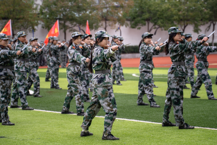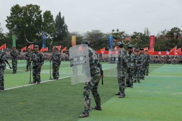 在军事科目表演环节,气势雄壮的刺杀操、刚劲有力的军体拳、英姿飒爽的匕首操、处置果断的校园反恐演练,一招一式尽显斗志昂扬,赢得全场师生的阵阵掌声?/span>