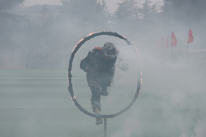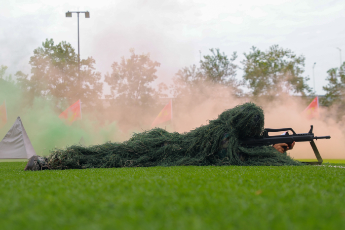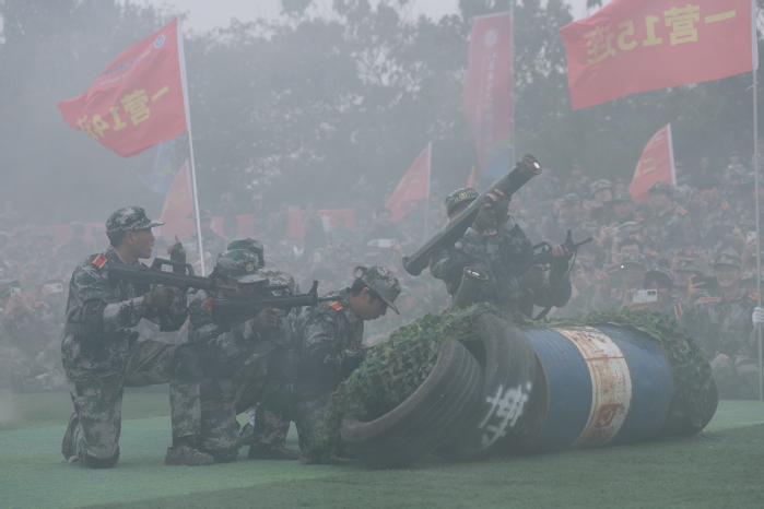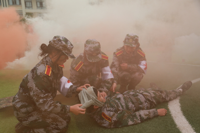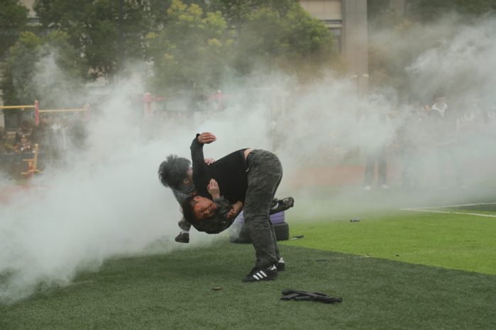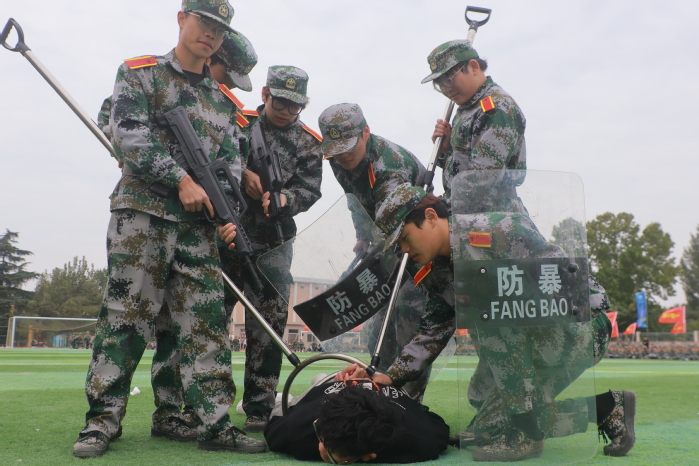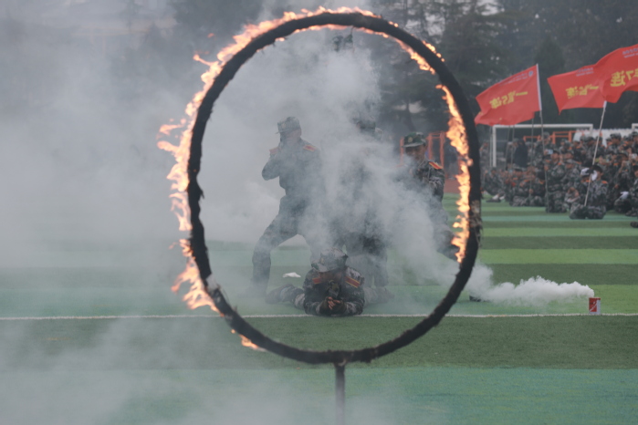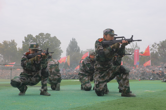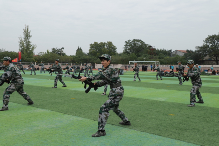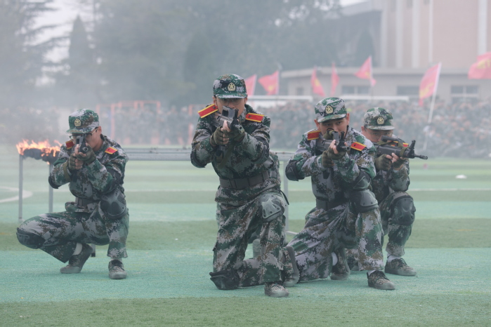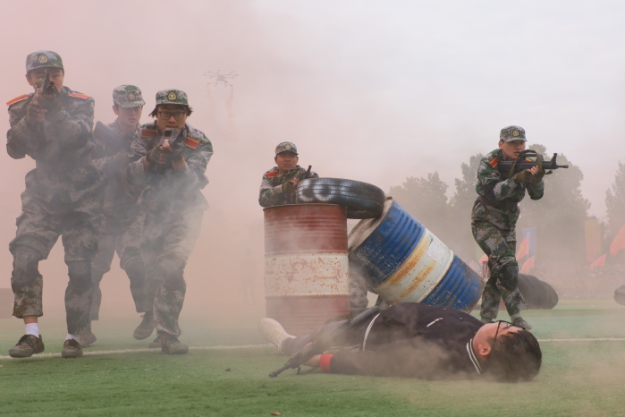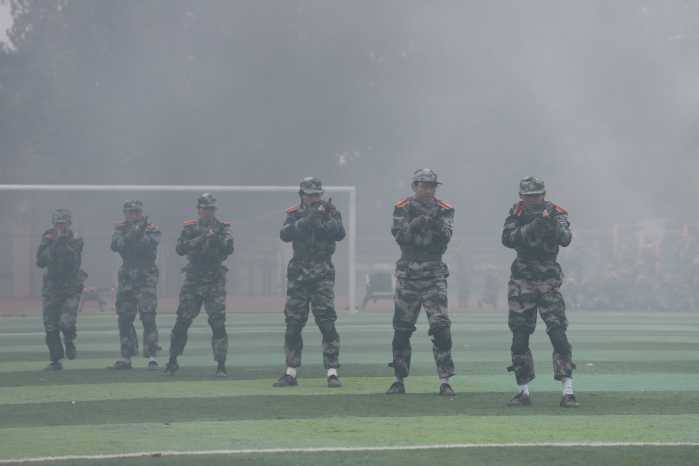 战术表演中,同学们运用战术队形进行作战演练,在模拟战场环境下进行接敌运动、搏斗杀敌、夺取阵地,将军训成果汇报表演推向高潮,充分展示了同学们良好的综合素质和朝气蓬勃、积极向上的精神风貌?/span>