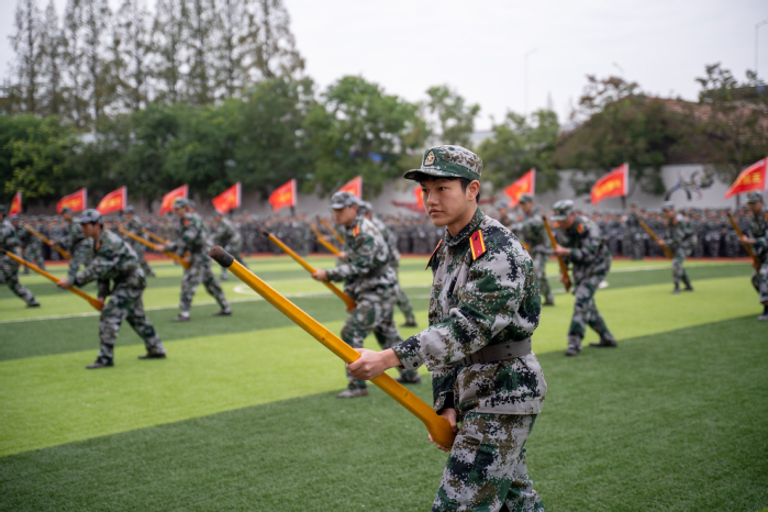 大会在雄壮的国歌声中拉开帷幕。各营连方阵依次走过主席台接受检阅,同学们步伐整齐、精神抖擞、口号响亮,动作规范有力,充分展现了军事训练所培养出的扎实素养与严谨作风?/span>