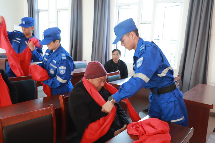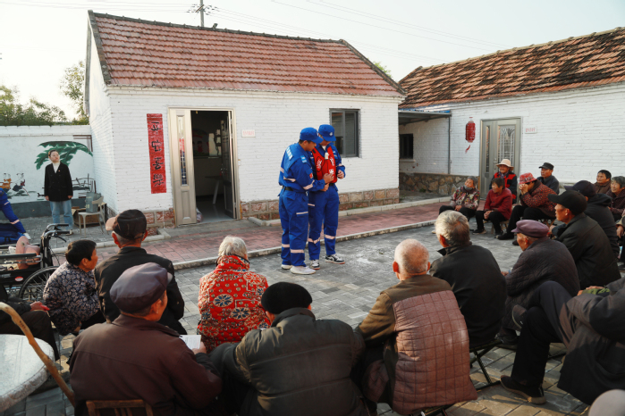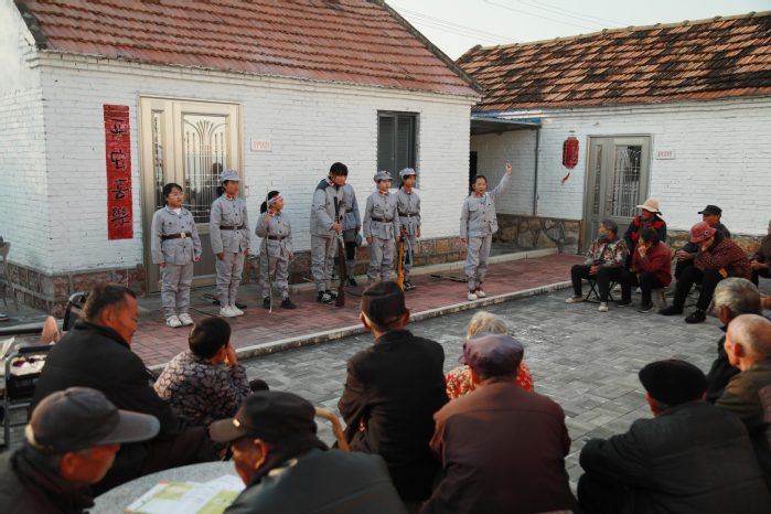 浓浓敬老情 美德在传承。大中小学生通过“心肺复苏”“海姆立克法”等急救现场演练和“八女投江”情景剧表演,分别为两村的老年人送去重阳节的温馨祝福?/span>