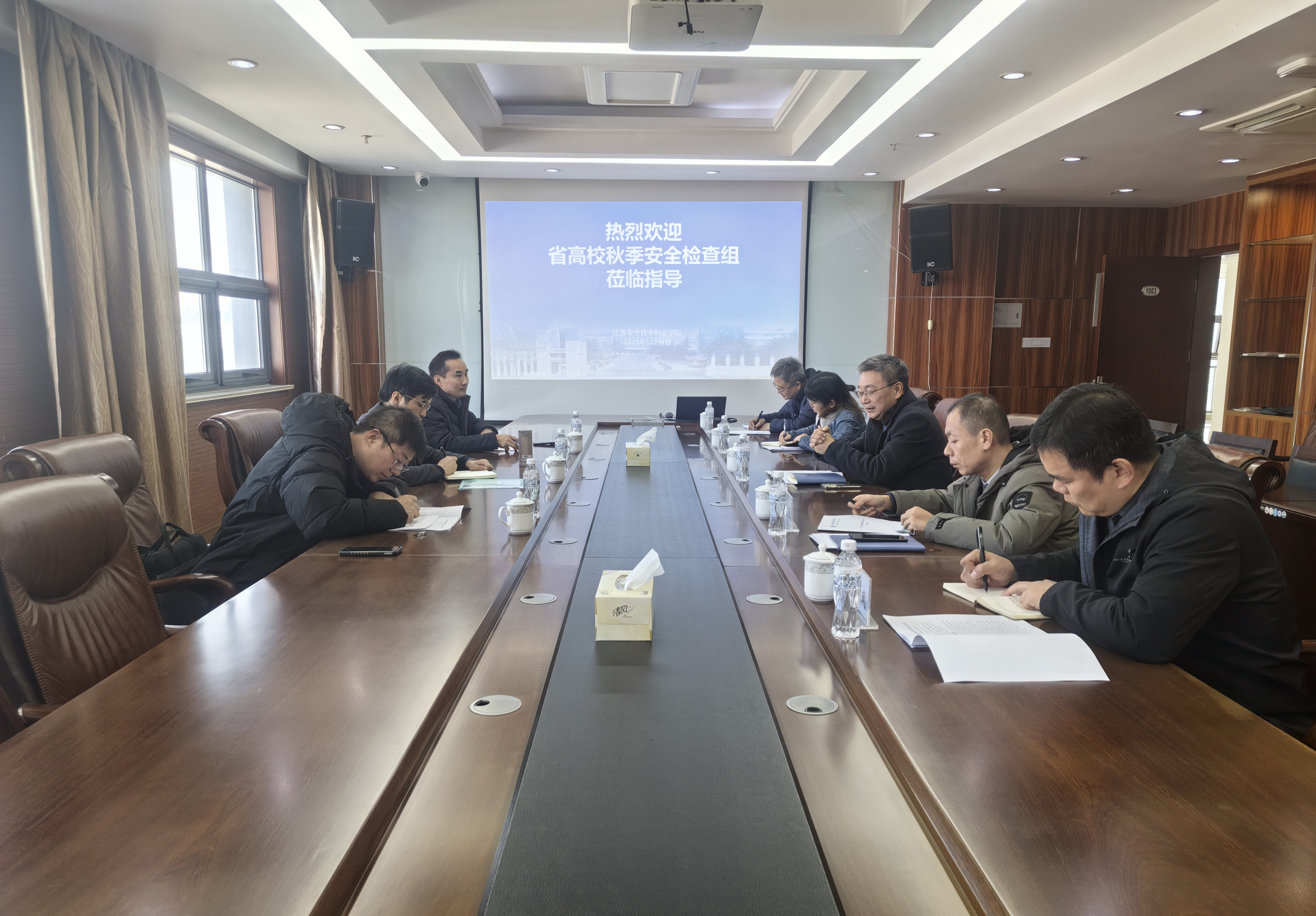 12?日,江苏省高校安全检查组第十九组来我校检查指导安全工作。副校长任国兴出席检查活动,安保处、教务处、学工处、后勤服务中心等相关部门负责同志陪同参加检查?/p>