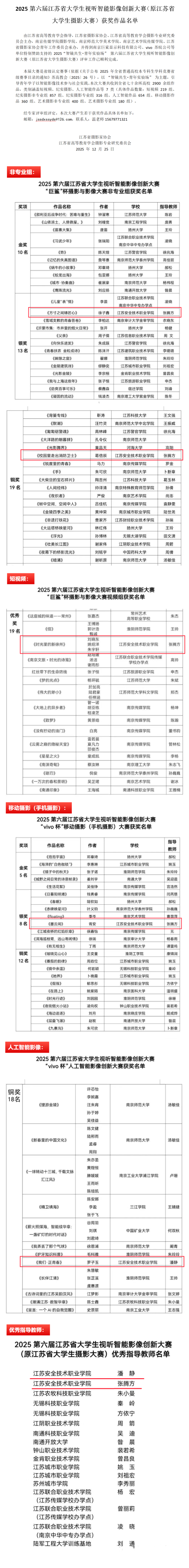 近日,2025第六届江苏省大学生视听智能影像大赛获奖名单发布,我校参赛学生在本届大赛两个分赛项的四个赛道中全部喜获佳绩,实现学校组织参加本项比赛以来的新突破。