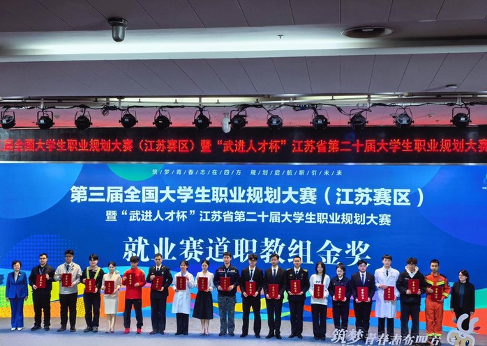 近日,由江苏省教育厅主办,省高校招生就业指导服务中心联合河海大学、南京师范大学、南京中医药大学、南京工业职业技术大学四所高校共同承办的江苏省第二十届大学生职业规划大赛圆满落幕。经过层层选拔与激烈角逐,我校学子斩获金奖1项、银奖1项、铜奖2项,乔成诚老师获评“优秀指导教师”。此次获奖数量位居徐州高职院校前列,创下我校在该项赛事中的历史最佳成绩。