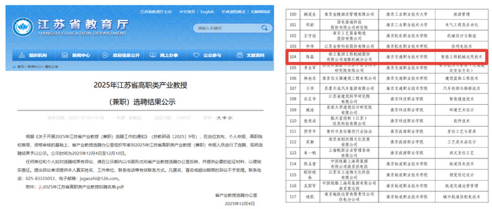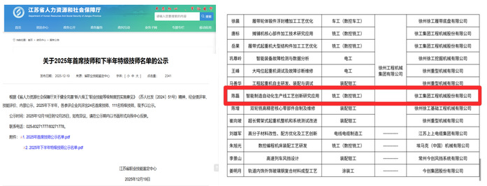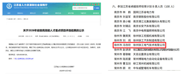 2025年末,省人社厅发布关于2026年省级高技能人才重点项目评选结果的公示、关于2025年首席技师和下半年特级技师名单的公示,省教育厅发布2025年江苏省高职类产业教授(兼职)选聘结果的公示,我校数控技术专业2011届优秀毕业生冯存欣入选江苏省卓越技师培育计划、2013届优秀毕业生陈磊获评特级技师并选聘为江苏省高职类产业教授。