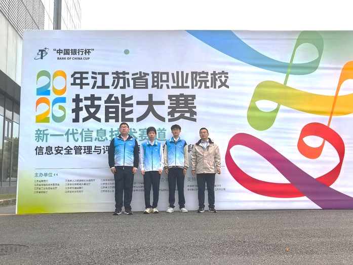 4月8日至12日,2026 年江苏省职业院校技能大赛“信息安全管理与评估”赛项在无锡顺利举办。我校网络与信息安全学院“提名者”网络安全战队迎难而上、精准破题,在全省强手比拼中斩获教师组一等奖、学生组三等奖。