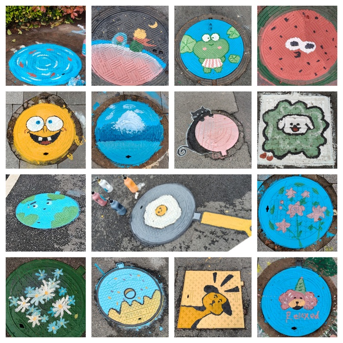 此次活动,商贸与人文学院统筹策划方案,艺术设计教研室教师发挥专业优势负责图稿设计与配色指导;学生分组协作,有序完成运动场主题墙绘、树木美化、井盖艺术彩绘三项创作。创作中师生将安全宣传教育、青春励志元素有机融入作品,使原本单调的设施焕发艺术生机,为校园增添了流动的文化符号。