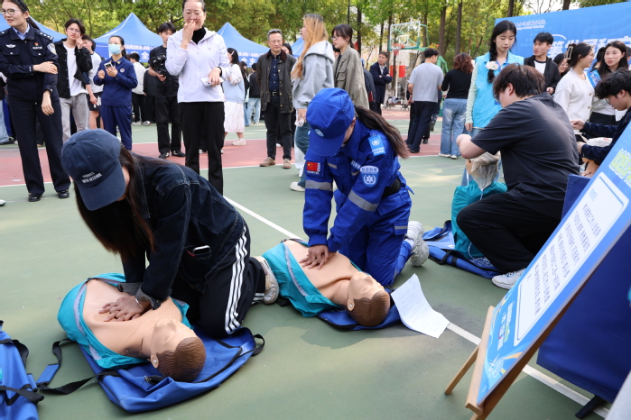 4月15日,学校在云龙校区举行了全民国家安全教育日主题市集活动,党委书记张东良、校长李桂萍、副校长魏勇及各相关职能部门负责人与师生共同参与本次活动。活动紧扣总体国家安全观核心要义,聚焦政治安全、经济安全、网络安全等重点领域,采用“主题市集+集章兑奖+实景体验”模式,现场设置国家安全、消防安全、金融安全等六大主题安全体验区,通过知识问答、技能实操、情景模拟等环节,把安全法规、防范技能、应急常识转化为可感知、可参与、可实践的鲜活内容。以沉浸式、互动式、体验式宣教,全面提升师生国家安全意识与风险防范能力。活动中,参与师生统一领取“安全闯关集章卡”,参与活动即可集章打卡,集齐指定印章可兑换安全文创礼品,以趣味化形式让安全知识入脑入心。活动还特邀徐州市云龙区消防救援大队,徐州市公安局云龙分局反诈中心、云龙分局店子派出所专业人员现场指导,开展了消防装备展示、应急处置演示、反诈安全宣讲等实景教学,将专业力量与校园宣教紧密结合,实现理论普及与实践练兵同频共振。