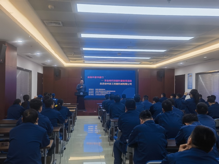 与此同时,依托安全特色专业资源与师资力量,学校组织专业教师前往徐州徐工挖掘机械有限公司,开展“应急科普华夏行”企业专场活动。结合工程机械行业高强度、高风险的生产特点,我校专业教师为企业近70名一线操作工人、设备维保人员、安全管理人员量身定制“行为安全+应急急救”双重实用课程,通过现场讲解、示范教学、实操演练等形式,把专业安全知识与行业生产实际紧密结合,切实筑牢企业安全生产“防护网”,以校企协同方式延伸国家安全教育覆盖面,践行服务地方安全发展的责任使命。