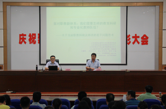 培训的第一讲,我们邀请到了江苏省职业教育与终身教育研究所所长、《江苏教育研究”职业教育版”》主编方健华博士。方教授结合我院正在发展转型时期的实际情况,就《面对职教新体系》在如何做好教育科研和需要怎样的师资队伍两个方面展开。他指出:高等职业院校教师必须走专业化发展的道路,教师应在自身专业精神、专业理论与专业实践知识、专业技能等方面不断提高与完善,快速成长、成熟起来,高职院校教师除了要教好书,更要做好科研工作,用科研促教学,形成良好的循环,