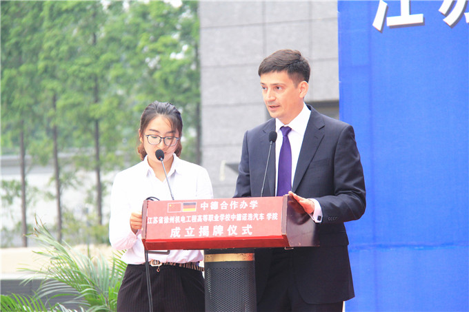 我院中德诺浩汽车学院成立揭牌仪式在云龙校区举行,中德诺浩汽车学院的成立,对于学院学习借鉴国际职业教育先进理念、拓宽办学思路和带动学校人才培养工作具有重要意义?/span>部分学生家长、企业代表以及汽车工程系全体高职学生参加揭牌仪式