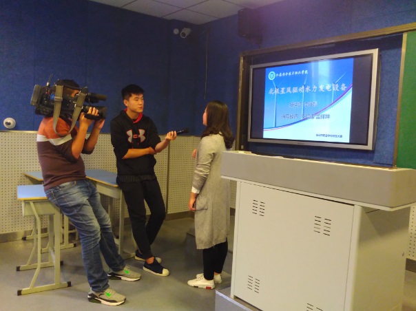 徐州市电视台现场采访我院北极星风驱动水力发电项目负责?br />