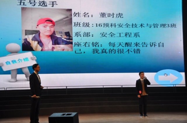 大赛共分为自我介绍、随机串词、魅力主持、才艺展示四个环节。来自我?/span>1015?/span>2016两个年级?/span>16位选手准备充分,自我介绍个性十足,才艺展示中既有动听悦耳的歌声,亦有赏心悦目的舞蹈,此外,更有各种有趣的诗朗诵等精彩表演。在魅力主持环节中,既有语言犀利的时事报道,也有独具慧心的焦点访谈,更有让人捧腹大笑的娱乐节目,展现了我院学生积极向上的良好精神风貌,让在场的评委老师和观众赞不绝口、拍手称好?/span>