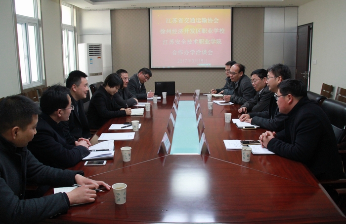 3?span>22日,院长徐建春、副院长任国兴、招就处副处长张宗泉赴江苏省交通运输协会洽谈。双方确认了今后的战略合作事?span>,并签订了合作协议。江苏省交通运输协会副秘书长、江苏省城市轨道交通运营条件评审中心副主任李培年对双方合作的前景充分认可,表示在我院设立苏北轨道交通职业教育培训基地、技能鉴定考核基地,有利于轨道交通行业人才的规范化培养,提升就业质量,引领苏北地区轨道交通职业教育的发展。双方就结合我院专业特色,全面开展城市轨道交通运营、技术服务类定制班的开设,人才培养定位、课程嵌入、实训基地建设、技能鉴定考核等方面进行了深入地探讨,并形成共识,近期实质性地启动合作项目?/span>