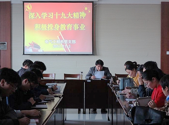 电气系教师政治理论学习会:要全方位、系统化地学习十九大精神,准确理解和把握十九大精神的核心,切实做到不忘初心、牢记使命,坚定青年学生为社会主义建设不断奋斗的信心�