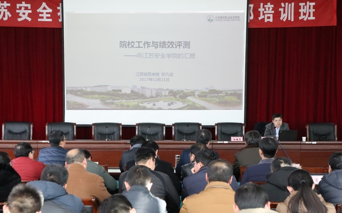 12�21�下午,江苏建筑职业技术学院曾凡远副院长来我院,为领导干部培训班做了题为《院校工作与绩效评测》的辅导讲座。院领导和全院中层干部聆听讲座�