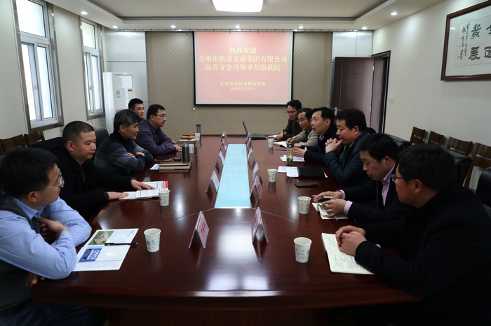 3�13�,苏州市轨道交通集团有限公司运营分公司安全总监凌世清等一�5人来我院调研。企业调研组参观了我院交通智能控制实验室、安全体验馆、机电类实验实训室等后,双方就校企合作进行了洽谈�