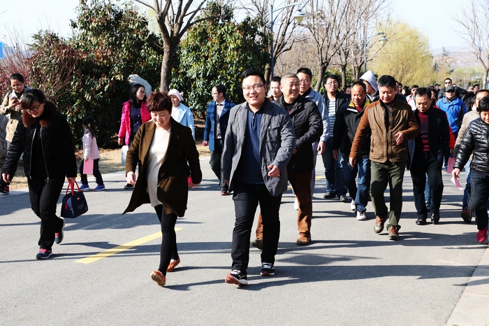 3�14�,学院工会发出了全员健身活动倡议书,号召全院教职工“快乐工作,健康生活”。活动得到了全院教职工的热烈欢迎和积极响应,�400余名教职工参与了健步走活动。当天下午,春风和煦,阳光明媚,大家以饱满、热情高涨的精神、边走边交流,呼吸着新鲜空气,感受着健步走带来的阳光和快乐。金龙湖和凤鸣湖畔回荡着我院教职工的欢快笑声,步道上留下了教师们锻炼的身影�