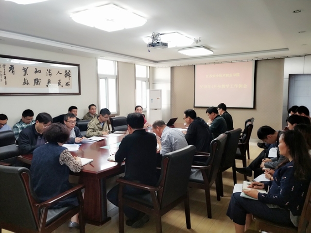 4�28�上午10时,我院4月份教学工作例会在贾汪校区机关楼二楼西会议室召开。李桂萍副院长、系部主任、教学主任、教务处、科研处、督导室全体人员参加了会议。会议由杜宗辉主任主持�
