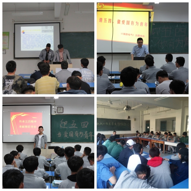 贾汪校区电气系、机械系开�“迎五四,做爱国有为青年”�“弘扬五四精神、做新时代的建设者”主题教育活动和学团干部座谈会�