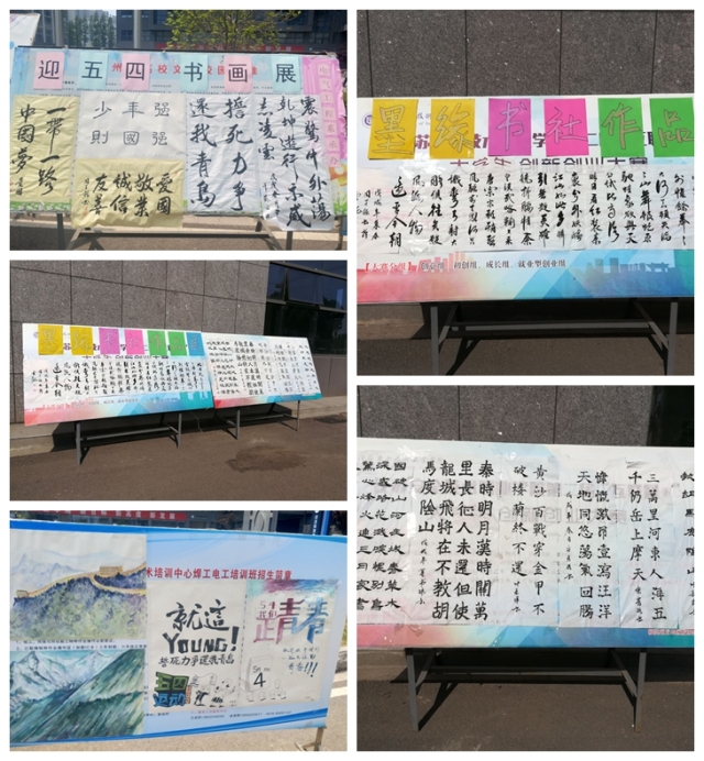 云龙校区安全系和电气系开�“迎五四,墨缘书法社团作品展”、“迎五四书画展”活动,以中国传统文化的形式宣扬五四精神�