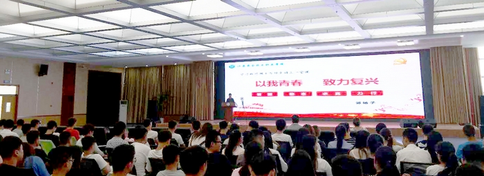 我院思政教研组教师郭杨子老师以《以我青春,致力复兴》为题给全院学生作首场讲座。郭杨子老师从“青春故�—初心的执着、铭记历�—爱国之力量源泉、励志践�—复兴之原生动力”等三个方面解读了总书记在北京大学师生座谈会上的讲话。同学们纷纷表示,要学习贯彻落实总书记提出的“爱国,励志,求真,力行”要求,勇担时代大任,做德智体美全面发展的社会主义建设者和接班人� (文/王昌福)