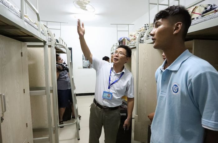 8�28日晚,经过两个昼夜的旅途劳顿,我院新疆�2018级新生�2017级老生234人平安到达徐州。党委副书记孙健身,副院长任国兴,学工处、安全系相关领导及老师在徐州站迎接新疆班同学。晚�8�30分,晚点1个小时的K1352次列车缓缓进站。接站的领导老师与新疆班同学、内派教师亲切握手问候,同学们也急切地向老师诉说着假期的见闻。晚�10时,新疆班同学到达贾汪校区,入住到整修打扫一新的新疆班公寓。副院长吴如根和总务处同志早已为同学们准备了被褥等生活用品和丰盛的晚餐�