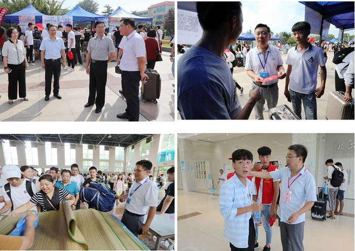 院领导徐建春、孙健身、吴如根、任国兴、成伯君、李桂萍等来到迎新现场看望新生和家长,慰问服务在迎新一线的师生。了解新生录取及注册情况,并与新生亲切交谈,鼓励他们尽快适应校园生活,好好学习、健康成长�