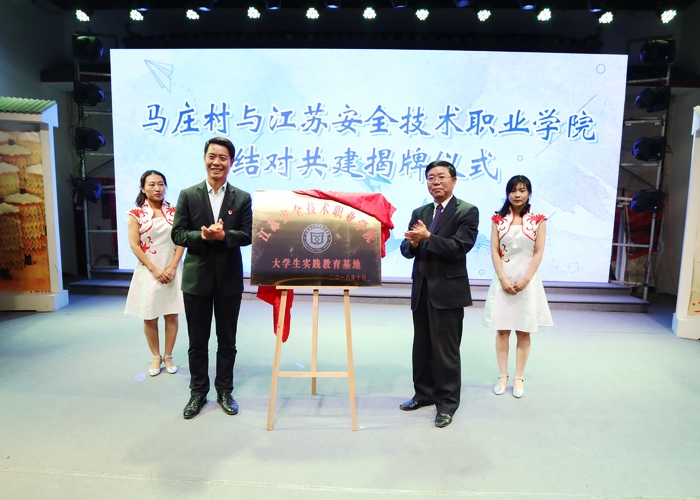 10�16日下午,我院与马庄村共建大学生实践教育基地揭牌仪式在马庄村文化礼堂举行。马庄村党委书记孟国栋与我院院长徐建春共同揭牌。马庄村党委副书记王浩与我院党委副书记孙健身分别代表双方签约。副院长李桂萍等出席揭牌仪式。信息工程系80余名学生参加活动�