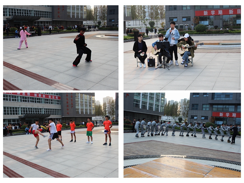直拳、侧踀过肩摔,坚毅的目光,利落的转身,重竞技表演和武术将现场推向高潮,刚柔相济的太极拳显出中华文化的博大精深,加深了师生们的文化自信。轮滑表演者们向同学展示轮滑平地花式动作、轮滑刹车、跳高等轮滑活动,非常具有观赏性,在表演中旋转、跳跃呈现着他们的精彩瞬间�