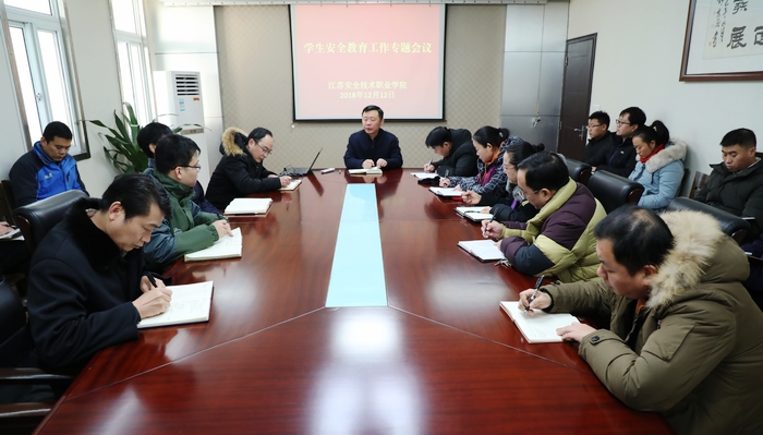 12�12日上午,学院召开学生安全教育工作专题会议。党委副书记孙健身传达了教育厅《关于切实做好岁末年初学校安全生产工作的通知》文件精神,并对下一步学生安全教育工作进行具体布置。学工处、团委、保卫处、宿管中心等部门负责人,宣传部相关人员、五个系支部书记、学管主任等参加了会议�
