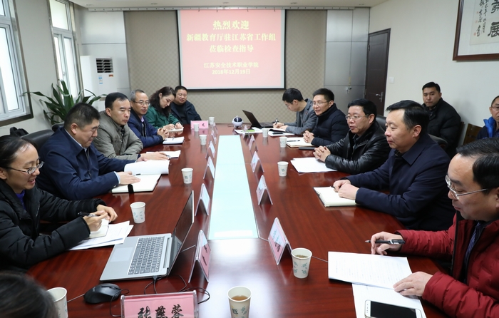 根据新疆维吾尔自治区教育厅内学办的相关工作要求,12�19日上午,新疆维吾尔自治区教育厅驻江苏省工作组组长、党委书记徐刚,教育协调组组长、党委副书记柳卉以及相关领导一行八人莅临我院,对我院内地新疆班办学情况进行了调研督导。学院院长徐建春、党委副书记孙健身、副院长吴如根以及安全工程系内地新疆班相关工作人员热情接待了调研组一行�