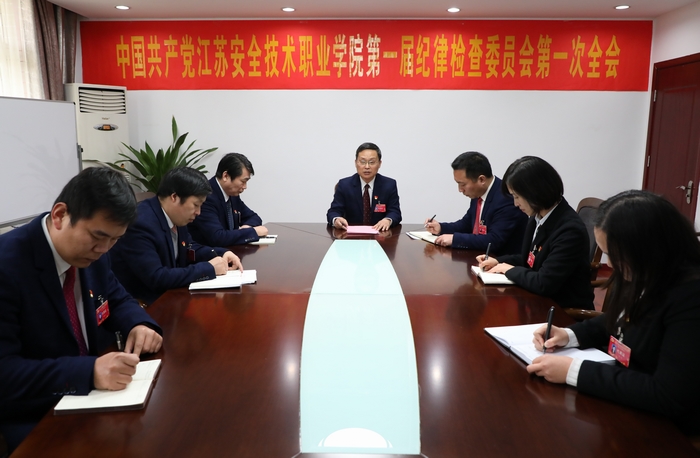 中国共产党江苏安全技术职业学院第一次代表大会选举产生的纪律检查委员会,于2018�12�26日举行第一次全体会议。成伯君同志主持会议�