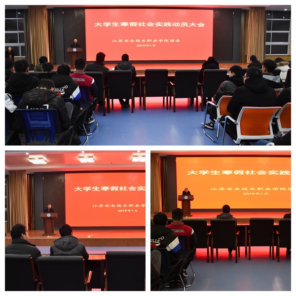 1�6日晚,学院团委在云龙校区举行大学生寒假社会实践动员大会。党委副书记孙健身出席会议,各系部团总支书记、所有辅导员以及500余名实践支队骨干参加了动员会�