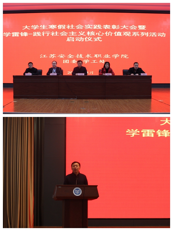 躬行践履新思想,青春建功新时代�3�4日下午,我院2019年寒假大学生社会实践活动表彰大会暨学雷锋践行社会主义核心价值观系列活动启动仪式在云龙校区会议中心举行。院党委副书记孙健身、党委委员薛莲出席会议,学工处、团委负责人以及各系领导参加了大会�