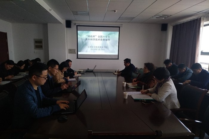 2019�3�19日上午,学院邀请徐州幼儿师范高等专科学校刘军教授到校做“‘挑战杯’全国大学生课外科学竞赛”经验介绍和指导。学院领导孙健身、李桂萍出席了培训活动;云龙校区教务科、学工科和各教学单位负责人、全体辅导员和“大小挑”竞赛指导教师参加了培训�