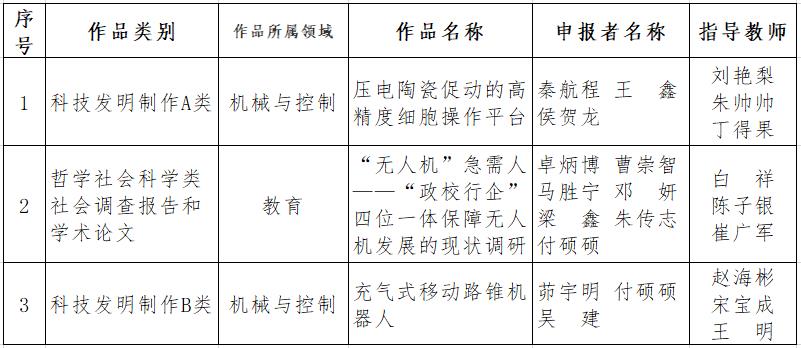 经自主申报、专家评审,现将江苏安全技术职业学院第十六届“挑战杯”大学生课外学术科技作品竞赛入围省赛作品公示如下?/span>