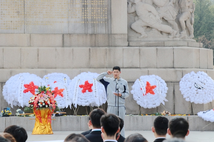 又是一年清明时,桃红李白、春暖人间�4�3日,院团委组织青年大学生代表100余人赴淮海战役纪念塔开展清明节祭扫活动,悼念为党和国家事业英勇献身的革命先烈们�