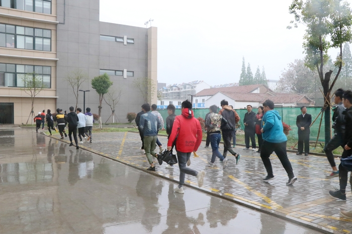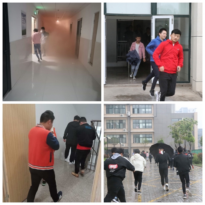 本次演习的男生宿舍楼�12层,入住学生�2000人,单体面积大,人员较集中,为了提高同学们的应急逃生本领和安全防范意识,学校组织本次消防疏散演习。同学们在老师和学生干部的组织引导下,冒着清冷寒雨,迅速有序地沿着消防通道紧急疏散,在规定的时间内到达指定安全场地集合,辅导员老师马上清点班级人数并向学工、保卫部门汇报情况。随后各系分管学生工作的领导对演练进行了总结,并作了宿舍消防安全专题教育�