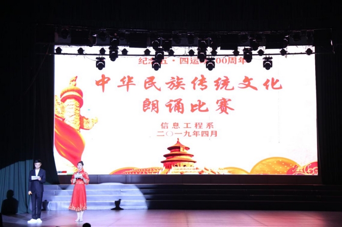 为推动青年学生传承和弘扬中华优秀传统文化、诵读经典、接受人文精神熏陶、感受中华优秀传统文化的魅力,同时纪念五·四运动100周年�4�24日晚�7点,信息工程系全体师生在学院文化中心举行中华优秀传统文化朗诵比赛�