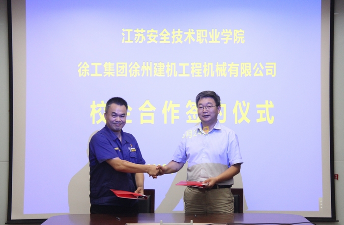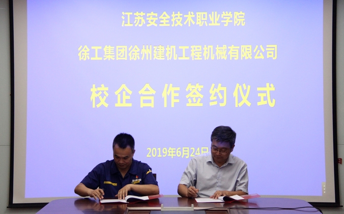 6�24日上午,我院与徐工集团徐州建机工程机械有限公�(简称“徐工塔机”)举行了订单式培养签约仪式。副院长任国兴、招生就业处处长马学建、机械工程系主任陈子银和徐工塔机党总支书记韦宁、综合管理部部长张淑芳等出席签约仪式�