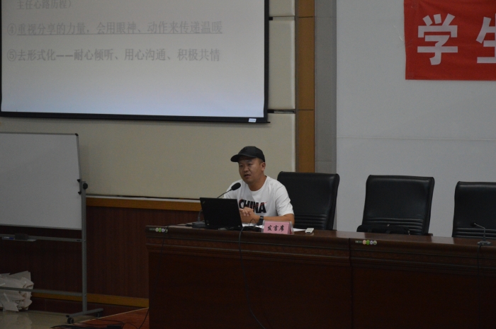 孙书记首先肯定了过去一学年我院在学生管理方面取得的进步,对从事学生管理工作的各位同志表示感谢,然后作《学生工作者责任感与幸福感》报告,孙书记语重心长、举例分享,从学生工作者需要的责任心、新时期重要任务、幸福感三个方面引导全体班主任提升认识。团委书记赵琦作《建好青年身边的共青团,当好学生身边的引路人》报告,向大家讲解新时代共青团的新使命,新时代青年学生的特点等内容。下午,学工处张立鹏老师作《高职院校班主任心理健康教育工作的实用主义和人文主义转向》报告,徐润生老师作《心理咨询案例分享》报告,为班主任教师下一步做好学生心理健康教育工作提供积极参考�