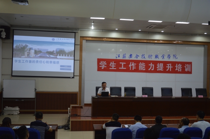 为进一步落实立德树人根本任务,促进学生管理工作规范化和科学化,聚焦新形势下班主任工作中的新要求、新任务以及重点难点问题,提升班主任思想引领能力、理论修养和业务水平�2019年学生工作者能力提升培训班�8�29日上�9时在贾汪校区B2�106会议室开班。各系学管主任、班主任和专职辅导员参加了此次培训活动,开班仪式上,学工处黄清站处长介绍了此次培训班的日程安排和要求,党委副书记孙健身作专题讲座�