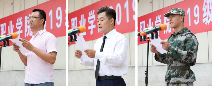新生班主任陈磊、学生会主席曹斌、新生代表张海峰发言。各系党支部书记、学管主任、贾汪校�2019级全体新生及班主任参加开学典礼�(文/耿刚 张立� �/耿刚�