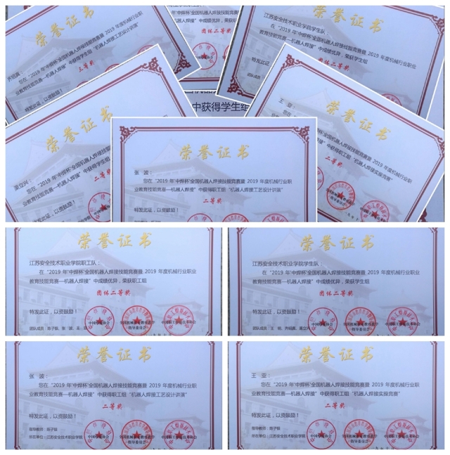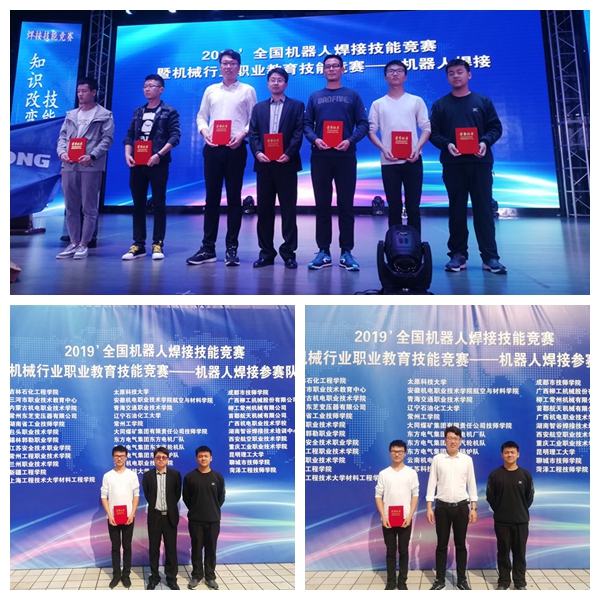 10�17-20日举办的2019年全国机器人焊接技能大赛暨机械行业职业教育技能大赛——机器人焊接赛项在常州工程职业技术学院闭幕,我院首次参加此项比赛并取得优异成绩,机械工程系师生两个参赛队荣获团体两银。王亚、张波老师荣获职工组团体二等奖(职工组二等奖第一名),其中王亚在机器人焊接操作单项中荣获二等奖,张波在机器人焊接工艺设计演讲单项中荣获二等奖;齐绍真、渠立兴荣获学生组团体二等奖(学生组二等奖第二名),其中渠立兴在机器人焊接操作单项中荣获二等奖,齐绍真在机器人焊接工艺设计演讲单项中荣获三等奖�