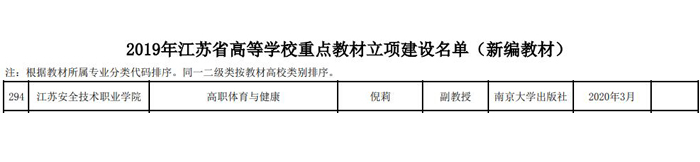 近日,江苏省高等教育学会传来喜讯,我院基础部倪莉老师新编教材《高职体育与健康》获2019年江苏省高等学校重点教材立项建设�