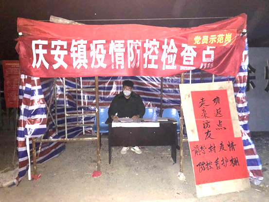 16高职中德班王杰同学自愿加入徐州市睢宁县庆安镇疫情防控检查点,按照当地政府要求值班,检查出入人员的体温。王杰同学在班里担任学习委员,是班里的学习标兵,多次获得奖学金,深受老师和学生的喜爱�
