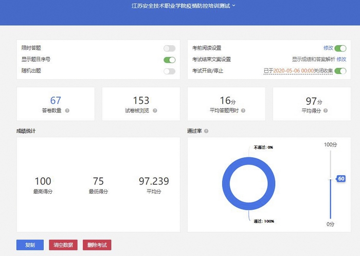 为提高全院教职员工的自我防护能力,强化学院疫情防控专业化水平,充分做好开学复课工作准备,学院近期组织开展了疫情防控培训,并�5�5日对中层以上领导干部进行了线上测试�
