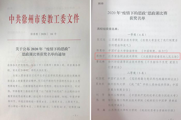 为贯彻落实徐州市教工委“疫情下的思政”教学比赛通知要求,我校积极参与比赛,喜获徐州市“疫情下的思政课”一等奖?/span>