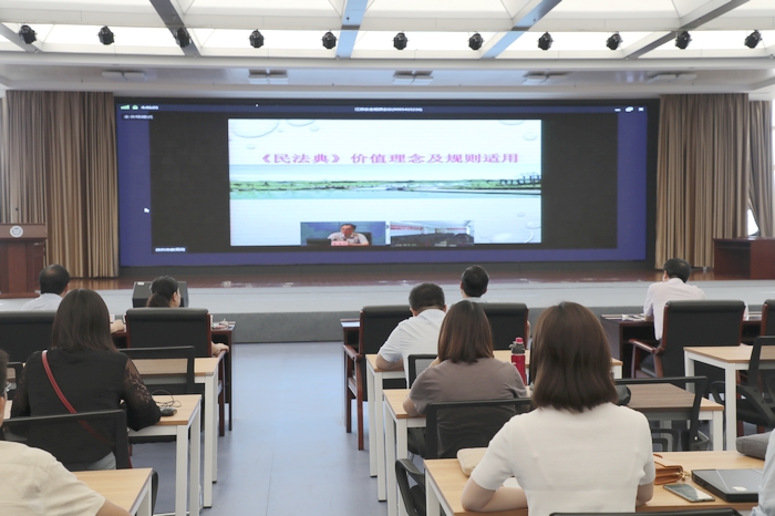 为深入学习贯彻习近平总书记关于全面依法治国的重要论述特别是关于民法典的重要指示精神,深入学习宣传实施民法典的重大意义,根据省应急管理厅文件要求�8�12日下午,我院组织全体教职工分两校区参加省厅民法典专题辅导讲座,集中收看了民法典宣讲会视频直播。在家院领导出席讲座,党委委员王体民主持讲座�